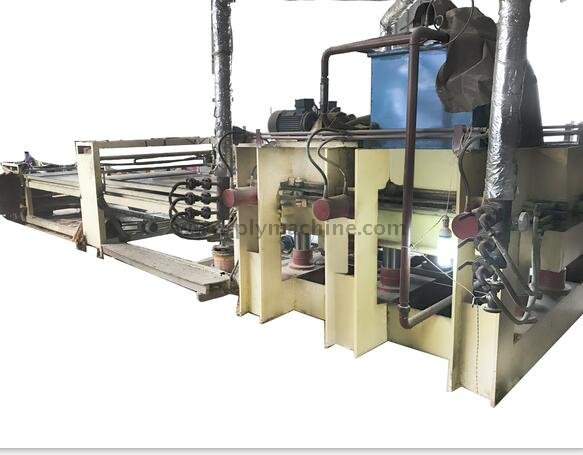 A máquina de prensagem a quente na linha de produção é de camadas duplas.